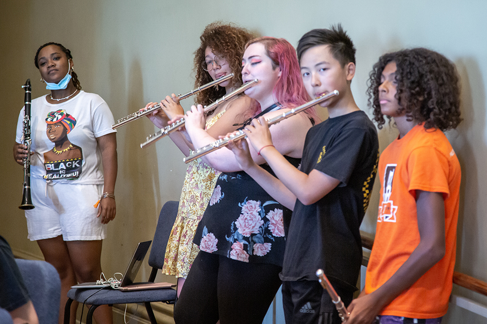 “I’ve been in the tuned-in program from the sixth grade to the twelfth. This taught me to strive to be limitless. I am currently enrolled full-time at Baltimore Community College pursuing music education. Tuned-In has helped me by providing me with private lessons, giving me opportunities to travel to places like Pontiac Michigan, traverse city Michigan & New York, and explore my instrument, and the creative side of music. I am currently a teaching artist working with Tuned-In students on Saturdays teaching co-teaching the performance class.”