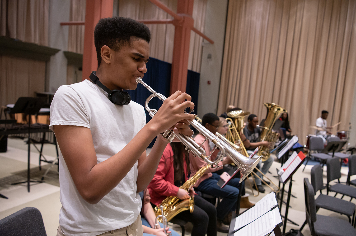 “The Tuned-In program was the single most important initiative in my college preparedness. I learned theory, rehearsal etiquette, how to interact with different people, composition and arranging, and unlike most students, Tuned-In exposed me to these key life principles at a very young age. I didn’t just learn how to read and play music, I also learned how to be more social and outgoing in society, and most of all I learned how to be a leader and to believe in myself and others. After I learned how to be a leader I began helping others become leaders, and it’s truly a life changing continuum.”