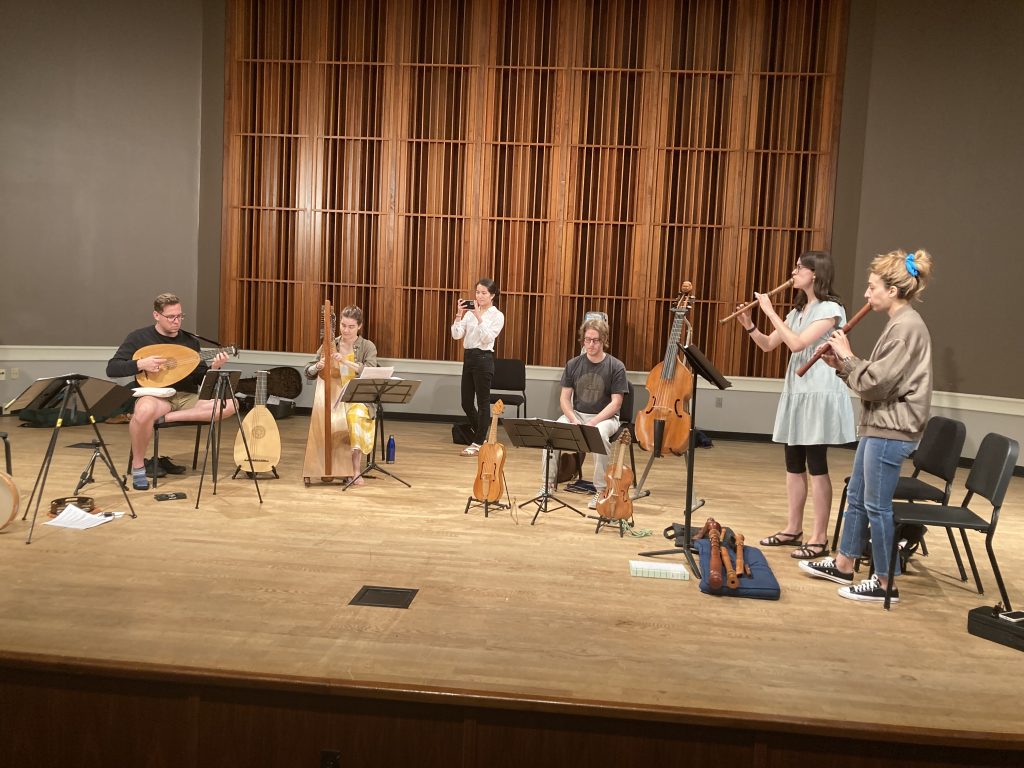 In the early music world, it’s a safe bet that you’ll run into a Peabody alum (or two, or twelve!) at any given performance or festival. This meant that the Indiana History Center served not only as that weekend’s concert venue, but also as the gracious host for a quasi-Peabody reunion. The musicians spent the weekend practicing in Basile Theater, both shivering from the AC and aglow with the joy of making music with former classmates and teachers. One benefit of nearly every musician on stage having received Peabody training was that we all had the same musical foundations to draw upon. Rehearsing together was immediately reminiscent of Tuesday nights with Renaissance Ensemble in Leakin Hall Room 414, and chamber coachings with Historical Performance faculty. We had all taken the same theory and performance practice courses and could communicate easily with one another.