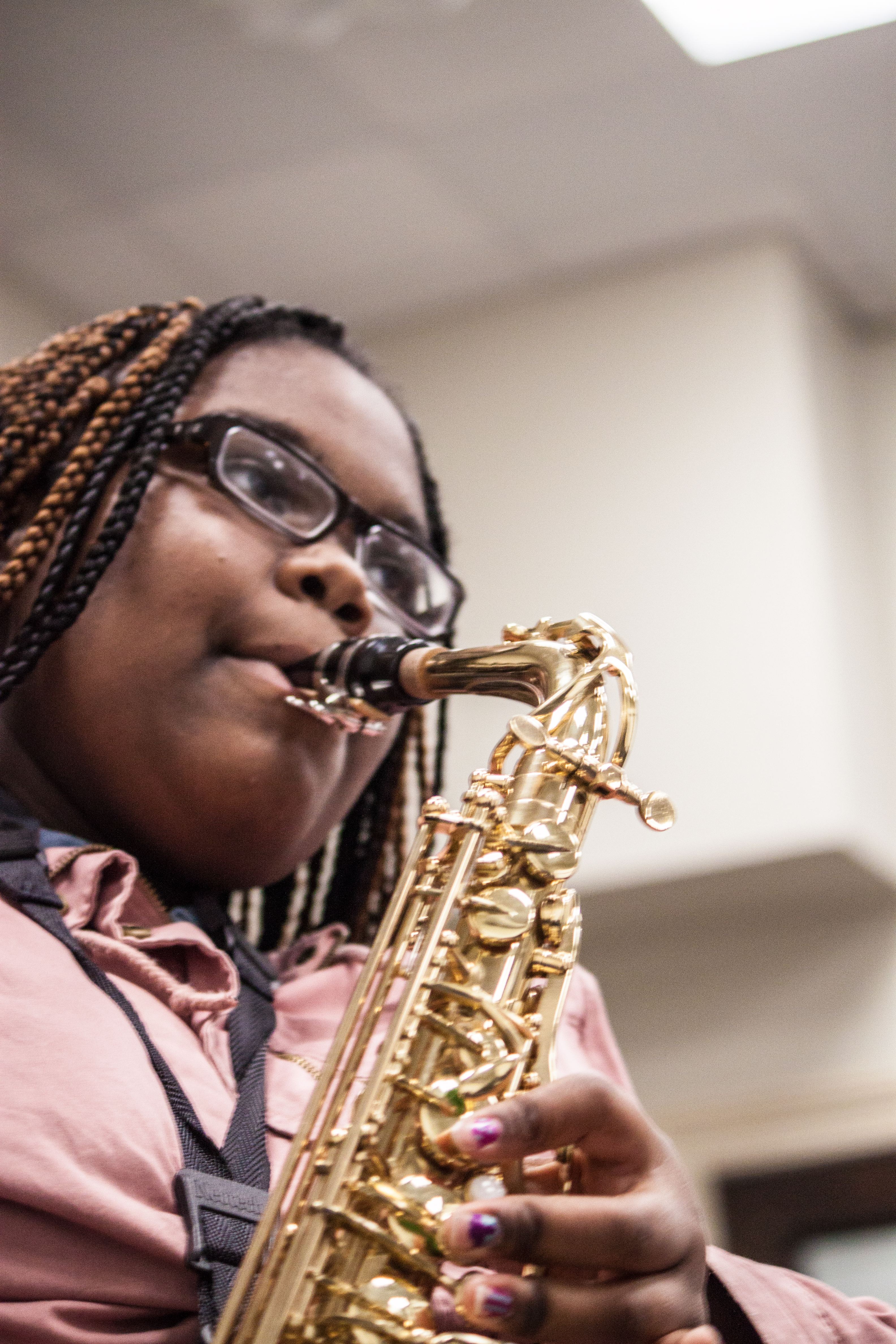 “I’ve been in the tuned-in program from the sixth grade to the twelfth. This taught me to strive to be limitless. I am currently enrolled full-time at Baltimore Community College pursuing music education. Tuned-In has helped me by providing me with private lessons, giving me opportunities to travel to places like Pontiac Michigan, traverse city Michigan & New York, and explore my instrument, and the creative side of music. I am currently a teaching artist working with Tuned-In students on Saturdays teaching co-teaching the performance class.”
