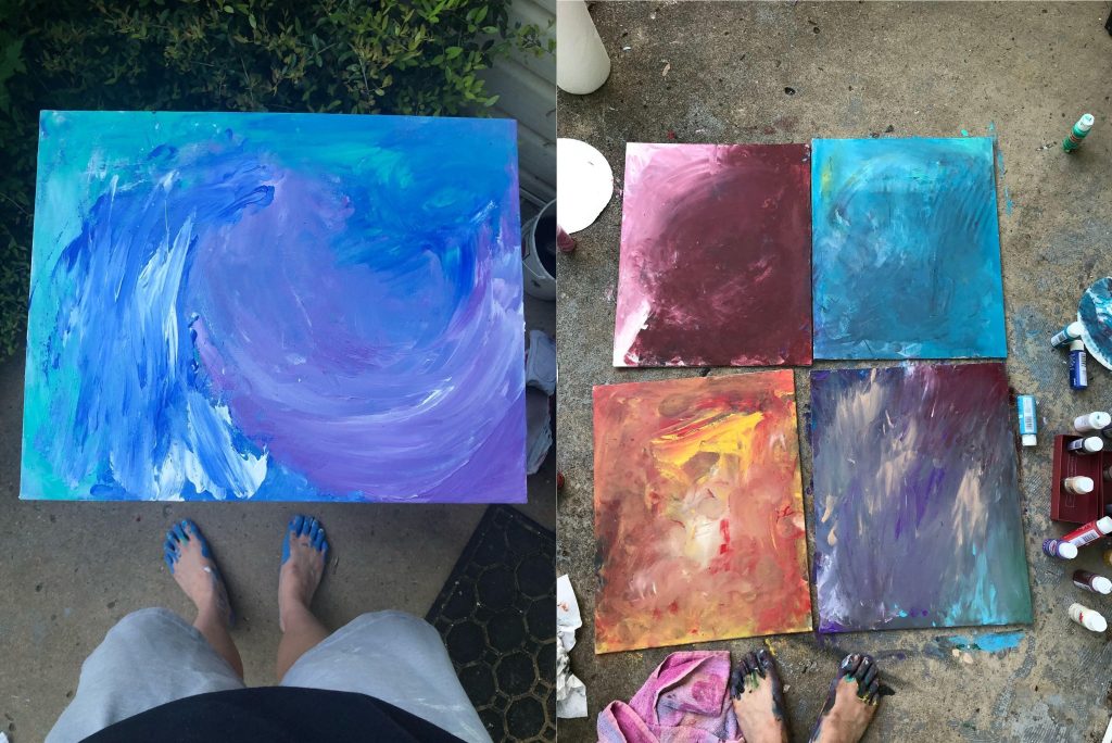 March 2020—an extended spring break, or so we thought. We were sent away from school for a short vacation, only to remain remote for the next six to ten months. All of a sudden, I didn’t have 20 square feet of space anymore, let alone a studio in which to process my grief or keep up my craft. Zoom classes became our new normal and they were impossible in my living room. I was at a loss with dance, coming up empty any time I tried to move and unable to access my traditional practice, so I started painting. I needed an artistic outlet and painting was the most accessible form even though I knew next to nothing about it.